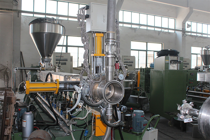 2.對于純TPU的造粒,從反應釜下來后,可采用我公司研發的專門針對TPU反應的雙螺桿預混喂料機和雙螺桿反應型擠出機組。