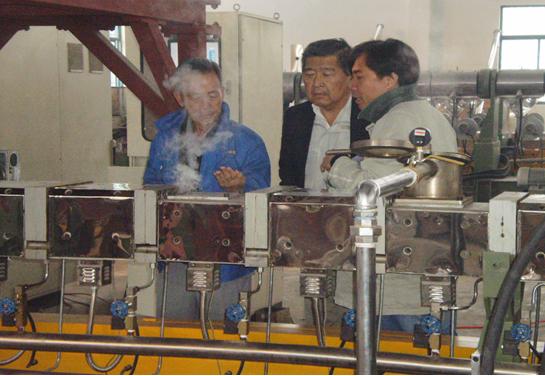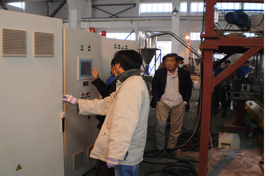 2009年11月16日,泰國SAND AND SOIL RESINS COMPANY LIMITED 的Parameth kachornvitaya一行四人冒雨來到南京杰恩特機(jī)電有限公司進(jìn)行設(shè)備的驗(yàn)收.客戶在參觀過生產(chǎn)車間后,對杰恩特機(jī)電有限公司的生產(chǎn)工藝,車間環(huán)境給予了高度評價(jià).在SHJ-92C設(shè)備驗(yàn)收過程中,對杰恩特機(jī)電有限公司自主研發(fā)的失重稱喂料系統(tǒng)高度贊賞,并與相關(guān)技術(shù)人員親切交談。