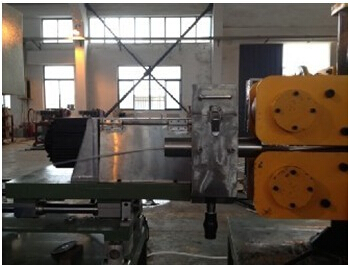 我司根據客戶的實際需要設計了新式共擠出管材生產線,該套生產線的最大特點是高轉速高產量,改進了傳統管材生產線真空定型臺和冷卻水箱的結構。